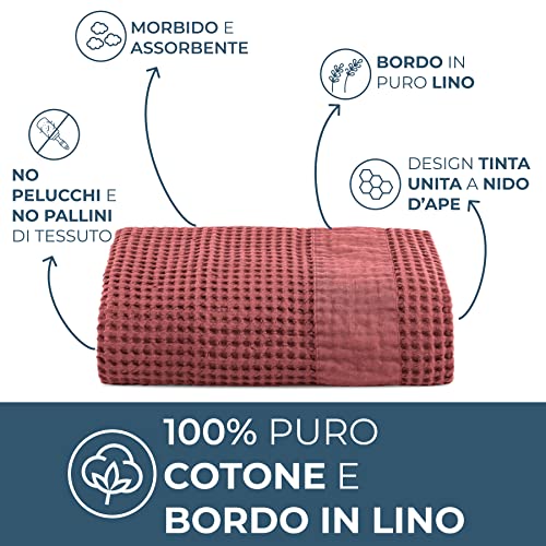 Telo Doccia con bordo in Lino realizzato in puro Cotone a nido d'Ape.