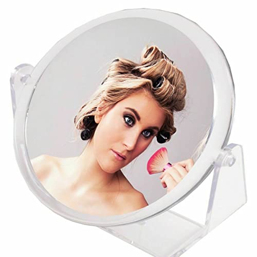 Lisseau Specchio da tavolo a doppio lato | Specchio ingranditore cosmetico da 10 cm | Specchio per trucco con supporti a perno trasparenti a 360 °