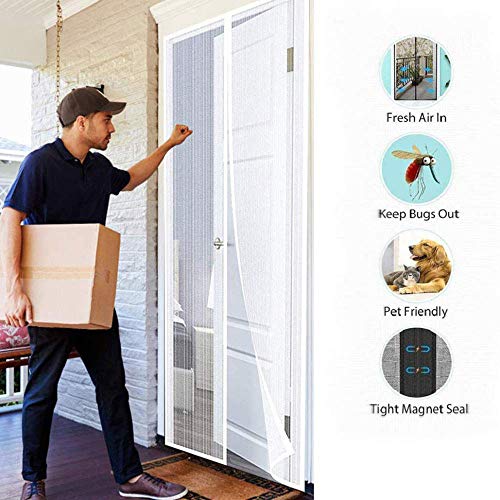 Aspetto elegante: tenuta stagna, la maglia della porta dello schermo è abbastanza piccola, la porta della zanzariera è realizzata in fibra di poliestere a trama fitta, il materiale resistente agli strappi e stabile per una lunga durata!