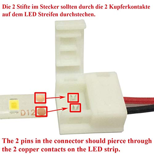 LitaElek 10pcs 2 pin Cavo Connettore striscia LED 2 poli prolunga jumper per impermeabile 10mm di larghezza SMD 5050 5630 monochrom LED Strip monocolore Striscia LED Nastro LED, Lungo 17cm