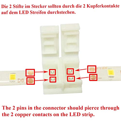 LitaElek Connettore a 2 poli impermeabile 2 pin connettore a striscia LED connettore rapido per 8 mm di larghezza impermeabile SMD 3528/2835 strisce LED monocromatiche (10 pezzi)