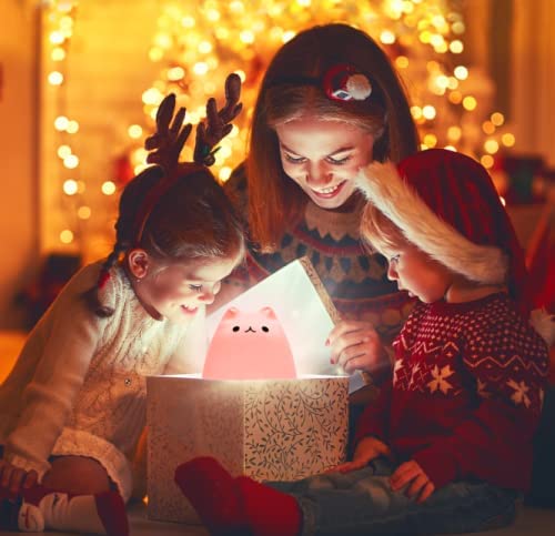 Litake - Luce notturna a LED, ricaricabile tramite USB, multicolore, in morbido silicone, con gattino, colore: bianco caldo e 7 colori di respirazione per bambini, bambini, bambini (gatto celebrità)