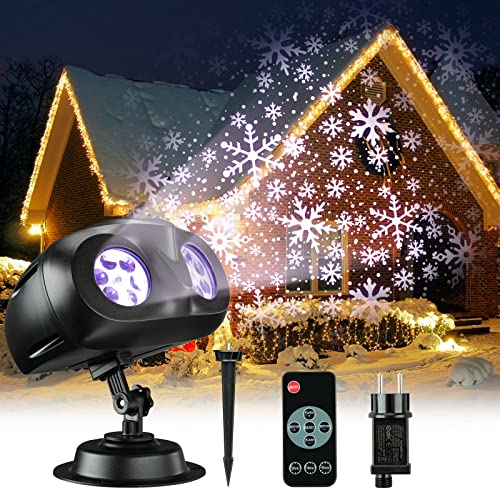 Litake Proiettore di Luci Natalizie Fiocchi di Neve, Lampada di Natale Proiettore LED con Telecomando Impermeabile IP65 per Natale, Festa, Giardino