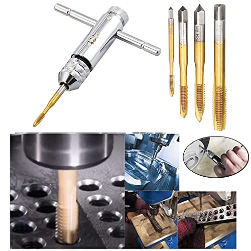 Litensh Set di chiavi per rubinetto con impugnatura a T regolabile, con 5 pezzi M3-M8 da 3 mm a 8 mm, filettatura metrica HSS