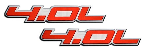 2 x (Pair / Set) 4.0L Liter Embossed RED on Highly Polished Silver Real Aluminum Auto Emblem Badge Nameplate for Chrysler Pacifica Town & and Country Dodge Coronet Nitro Grand Caravan Ford Aerostar Ranger Explorer Sport Trac Mustang Jeep Grand Cherokee Comanche Wagoneer Wrangler