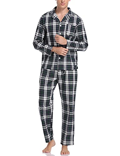 Litherday Pigiama Uomo Cotone Pigiama Scozzese Uomo Invernale Pigiami Due Pezzi da Uomo Pigiama Uomo Lungo Comodo Abbigliamento Casual per la Casa Verde M