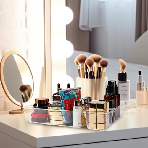 Litimkat 25 Organizer per cassetti trasparente con scatola portaoggetti in plastica di 4 dimensioni, organizer trasparente antiscivolo per trucchi per bagno, cosmetici, toeletta, cucina, ufficio