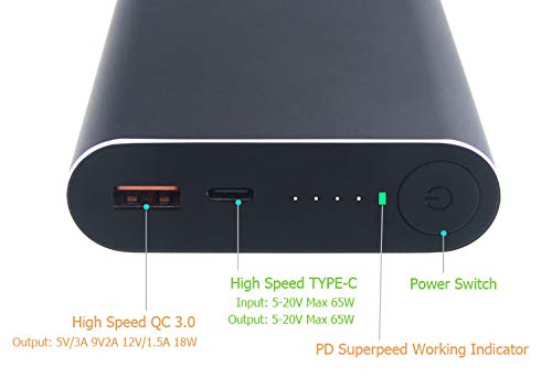 Litionite Vulcan 65W / 20000mAh Power Bank PD in Alluminio - 1x USB Output (Quick Charge 3.0) - 1x USB Type-C Input & Output - Batteria Esterna Portatile per MacBook/Smartphone/Tablet/PC/Drone