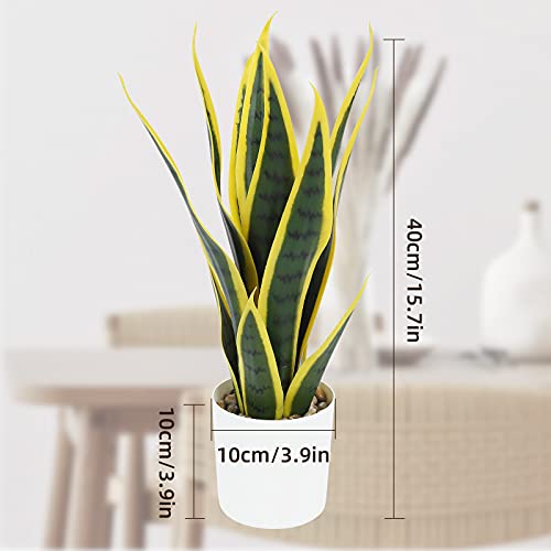 Dimensioni perfette: porta piante belle e naturali nella tua vita. Questa pianta artificiale può essere decorata con altri fiori artificiali per creare un'atmosfera romantica. Ogni pianta Faux è alta circa 15,7 pollici (dalla punta superiore della pianta al fondo dei vasi). L'albero Sansevieria ha 12 foglie.