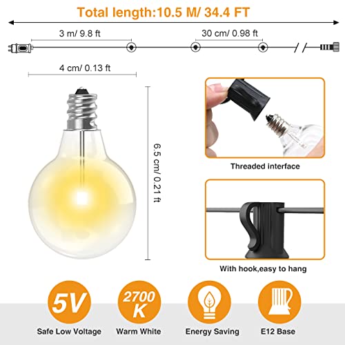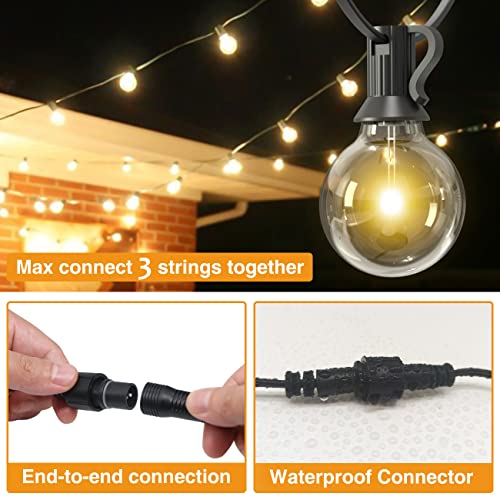 【Connessione End-to-end】Le nostre lampadine G40 si accendono indipendentemente e forniscono un cavo di prolunga 3M, quindi le lampadine danneggiate o spostate non influiranno sulla luce. Ogni catena ha una connessione end-to-end e puoi collegarle in serie per una lunghezza maggiore, che ti consente di collegare fino a 3 stringhe di luce per coprire una vasta area.