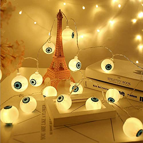 LITOU Catena di luci a forma di occhio fantasma, 1,5 m, 10 LED, impermeabile, 3D, per Halloween, interni ed esterni, per feste (bianco caldo) (occhio fantasma)