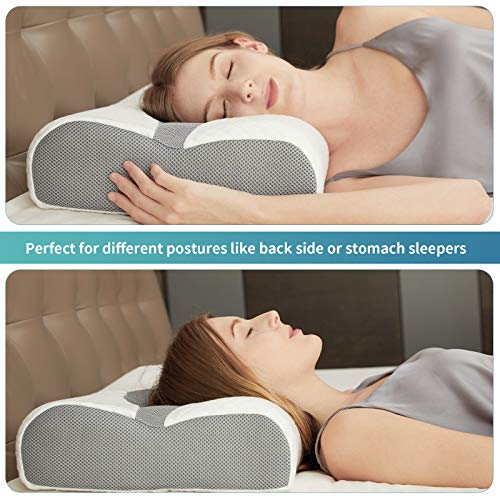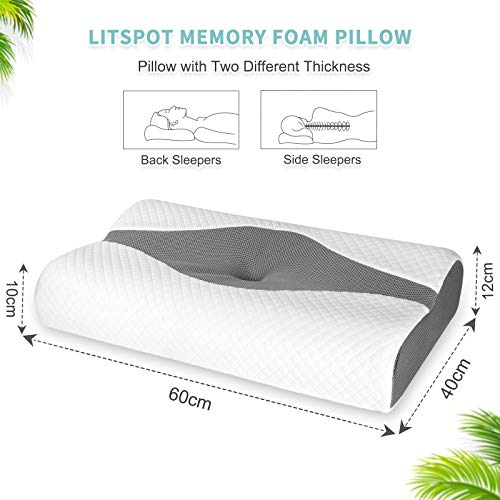 LITSPOT Cuscino Cervicale Ergonomico Cuscino in Memory Foam Regolabile in Altezza, Cuscino Ortopedico Supporto Collo Cuscino Ergonomico Collo(Grigio)