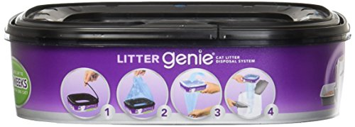 La cartuccia di ricarica standard Litter Genie per il sistema di smaltimento della lettiera offre 4,3 m di sacchetti per la lettiera Genie e dura fino a due mesi per un gatto.