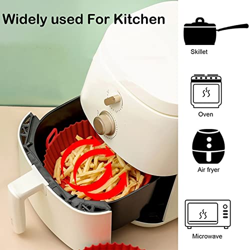 Litthing Pentola in Silicone per Friggitrice ad Aria Teglia Riutilizzabile in Silicone Teglia Antiaderente ad Aria Accessori Cestello Pentola di Ricambio Foderata per Forno a Microonde (Stile 1 Rosso)