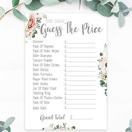 Indovina il gioco prezzo (10 carte) Prima che la festa ottenere il padrone di casa di compilare i prezzi corretti di tutti gli articoli elencati e tally up il costo.. Dare un foglio per ogni giocatore al baby shower e tutti scrivere la vostra migliore ipotesi al costo di ogni articolo.. La persona con il totale più vicino a quello dei padroni di casa baby shower è il vincitore!