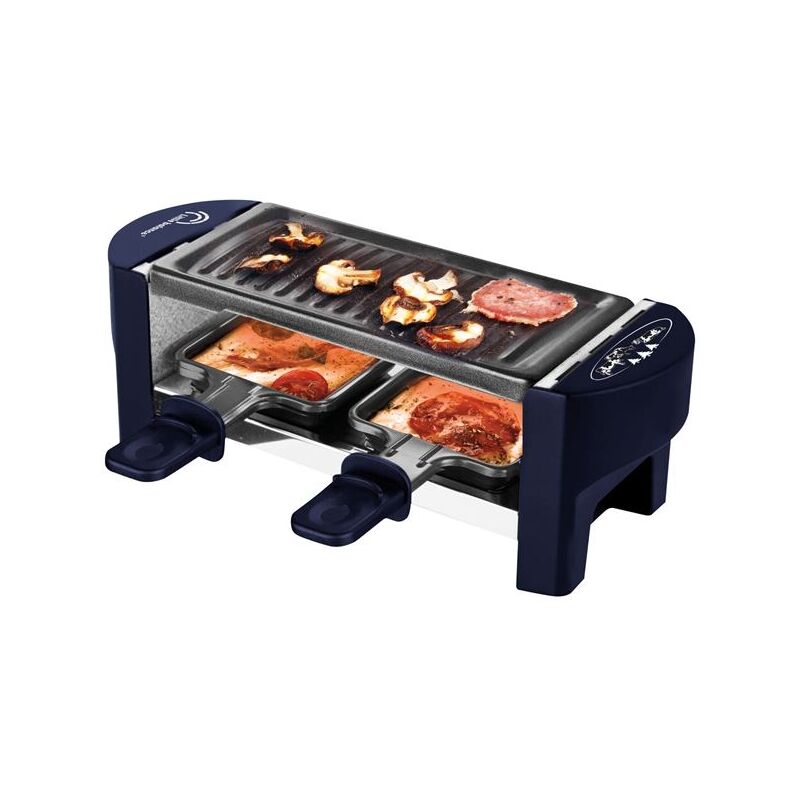 Raclette per 2 persone Night Blue - Meuuuh...! - Un'originale raclette con il suo decoro Cow & Moo sui lati! - Una graziosa raclette ultra compatta per due persone - Vassoio grill antiaderente removibile - 2 teglie antiaderenti lunghe con manico Cool Touch - Fornito con 2 spatole e 2 taglieri in legno - Colore Midnight Blue - Dimensioni 30 x 11 x 10,6 cm - Potenza 350 W.