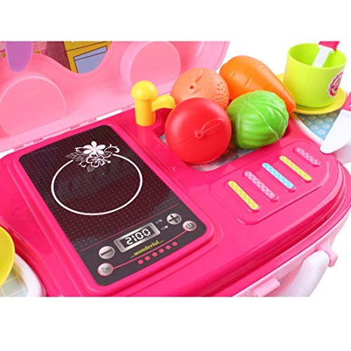 DeAO, Little Chef - Cucina Giocattolo, Mini Valigetta Portatile per Giochi di Ruolo, Set con Accessori (Rosa)