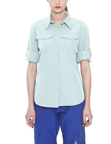 Little Donkey Andy Camicie da Donna Elasticizzato ad Asciugatura Rapida Resistente all'Acqua UPF50+ per Escursionismo, Viaggi, Campeggio Azzurro Taglia M