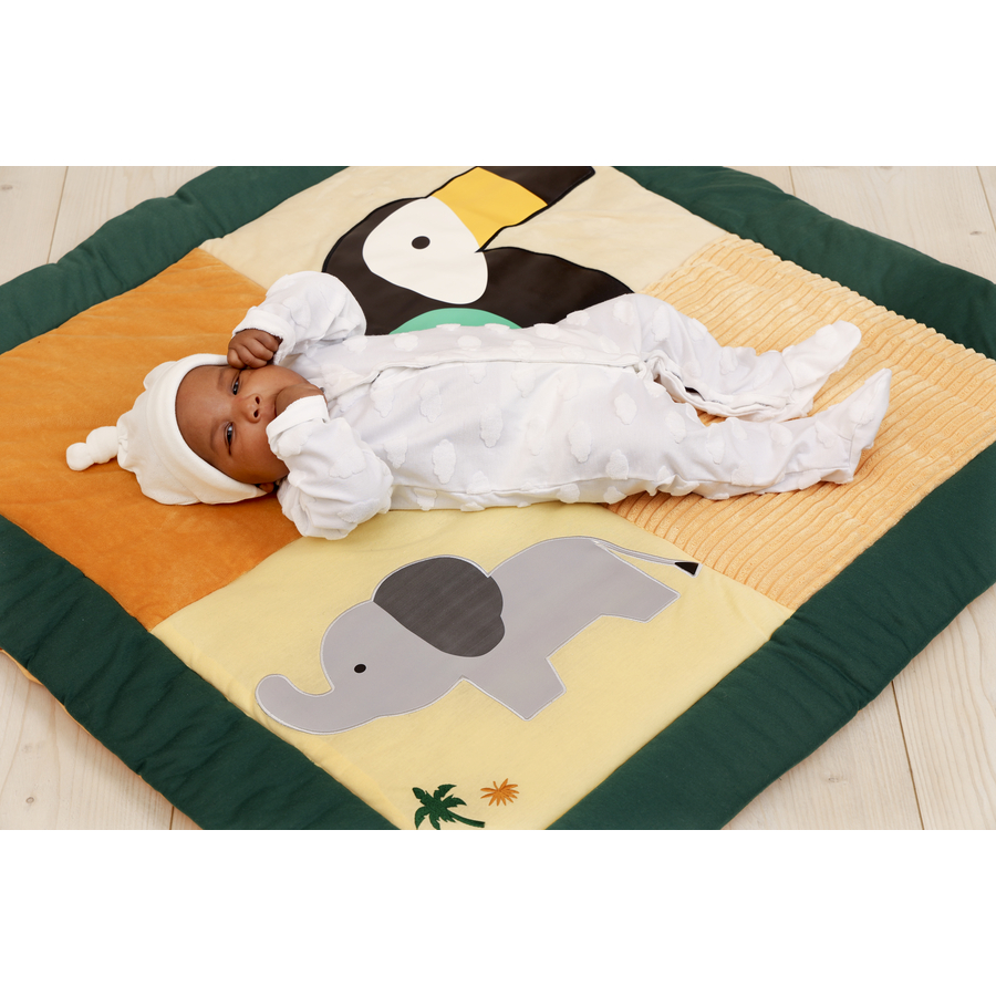 Dettagli del prodotto: Età: da 0 mesi Il tappeto da gioco Patchwork è un tappetino che può essere utilizzato su entrambi i lati con 2 scene diverse Il tappetino Patchwork, realizzato con diversi tessuti, favorisce lo sviluppo sensoriale del bambino ed è ideale per stare sdraiato sul pancino Può essere utilizzato con lapalestrina in legno per ulteriori giochi e scoperte È lavabile in lavatrice Dimensioni e peso: Dimensioni (lunghezza x altezza x larghezza): 100 x 100 x 1 cm Peso: 0,885 kg Materiale e cura: Materiale: 100% fibra di poliestere