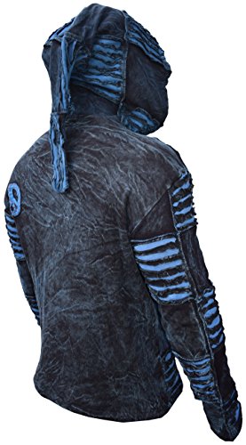 Little Kathmandu - Giacca blu tipo patchwork con cappuccio, stile hippie