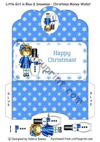Little Girl in Blue & Pupazzo di neve - Natale denaro Portafoglio by Valerie Dawes