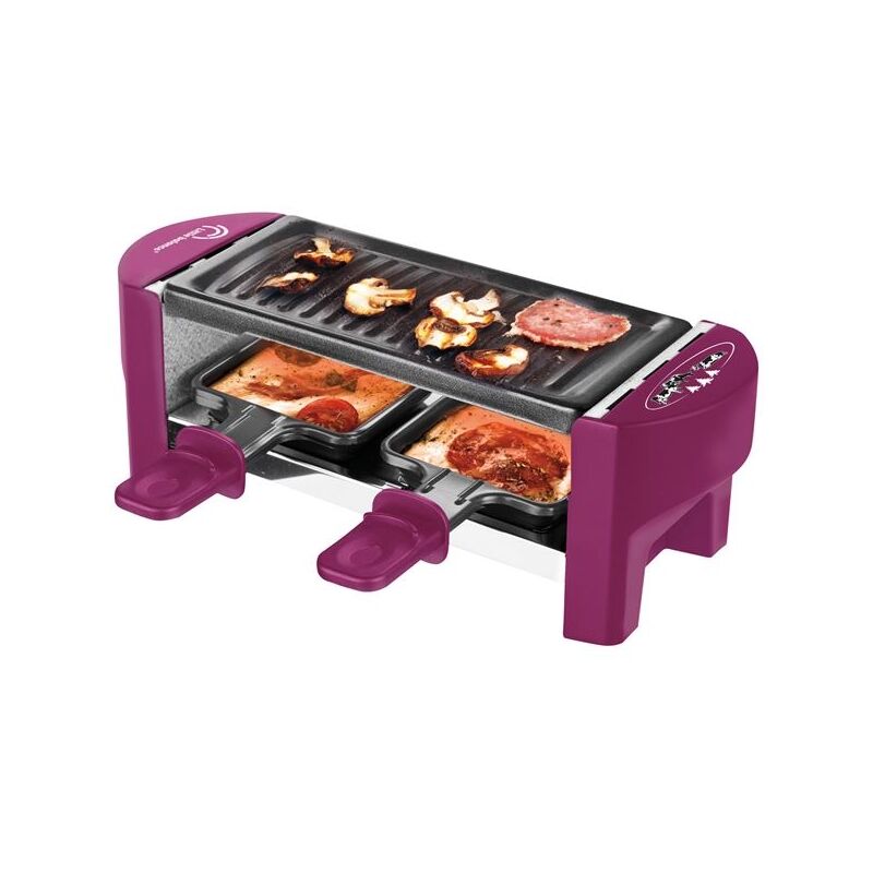 Raclette 2 persone Prugna - Meuuuh...! - Un'originale raclette con il suo decoro Cow & Moo sui lati! - Una graziosa raclette ultra compatta per due persone - Vassoio grill antiaderente removibile - 2 pollici antiaderenti lunghi con manico Cool Touch - Fornito con 2 spatole e 2 taglieri in legno - Colore Prugna - Dimensioni 30 x 11 x 10,6 cm - Potenza 350 W.