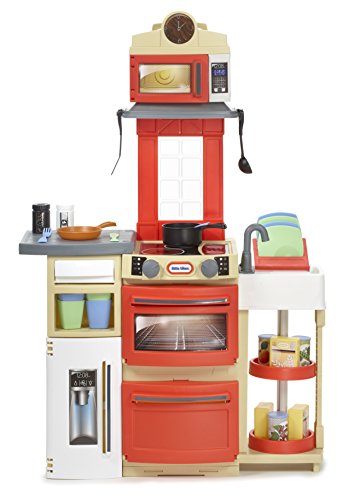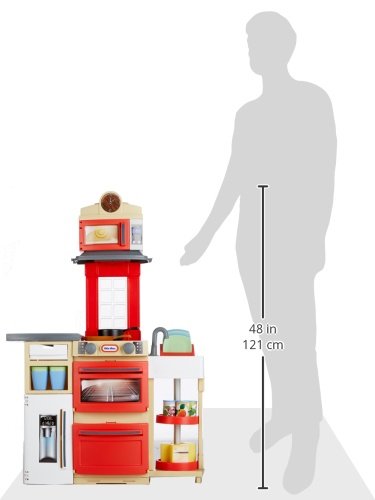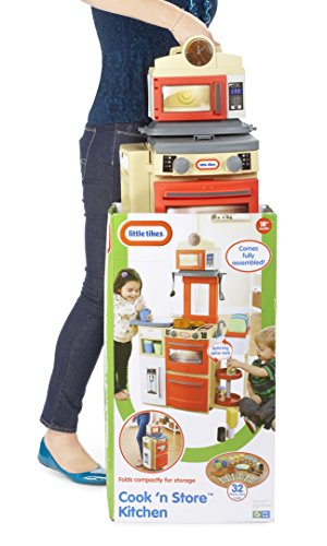 Dotata di spazi per riporre i 32 accessori inclusi (utensili, piatti, tazze, padella, barattoli e spezie), forno a microonde, lavandino e fornelli con manopole a clic.