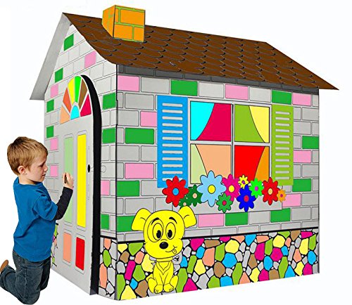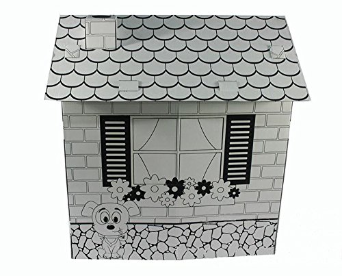 LITTLEFUN La mia casa da Gioco Pieghevole da colorare per Bambini DIY Giocattolo di Cartone Ondulato(Cottage dei Cartoni Animati)
