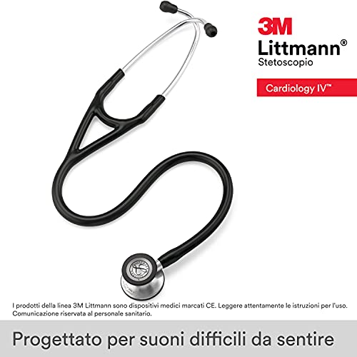 3M Littmann Stetoscopio diagnostico Cardiology IV, testina con finitura standard, tubo auricolare nero, connettore e archetto inossidabili, 69 cm, 6152