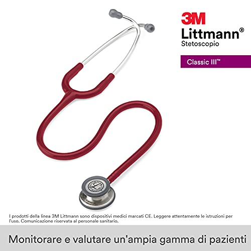 3M Littmann Stetoscopio per il monitoraggio Classic III, tubo auricolare bordeaux, 69 cm, 5627