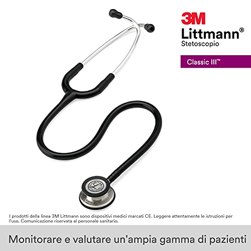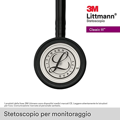 3M Littmann Stetoscopio per il monitoraggio Classic III, tubo auricolare nero, 69 cm, 5620