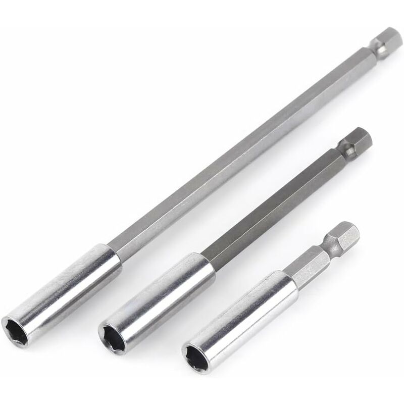 ALTA DURATA: supporto in acciaio duro per la massima durata, la costruzione robusta consente una lunga durata CONNESSIONE RAPIDA: i portapunte hanno magnetismo per una connessione o disconnessione rapida e mantenerli in posizione durante la guida AMPIA APPLICAZIONE: gambo esagonale universale da 1/4 """" e presa esagonale da 1/4 """" si adattano alla maggior parte dei cacciaviti, punte da trapano e punte elettriche FACILE DA TRASPORTARE: le dimensioni ridotte ti consentono di portare la tua estensione della punta ovunque per svolgere qualsiasi lavoro e possono essere riposte in molte borse degli attrezzi 3 MISURE: sono presenti tre staffe di prolunga di diverse lunghezze ed è possibile utilizzare quella adatta alle diverse esigenze Caratteristiche: Materiale: acciaio al carbonio e acciaio al cromo vanadio Dimensioni gambo esagonale: 1/4 """" Dimensioni presa esagonale: 1/4 """" Lunghezza: 6 cm / 2,36 "", 10 cm / 3,93"", 15 cm / 5,9 "" Quantità: 3 Il pacchetto include: 3 x