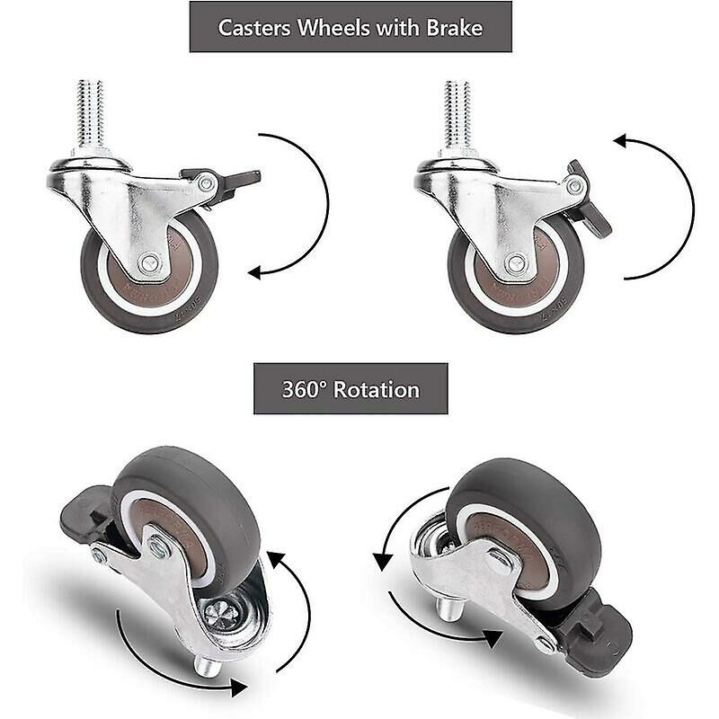 Dimensioni perfette: diametro 50 mm, larghezza ruota 17 mm, altezza di montaggio 67 mm, barra di montaggio M10 * 25 mm Matriaux di alta qualità: le ruote sono realizzate in PTE matriau e il guscio stabile rende le nostre ruote universali esenti da usura e molto resistente e durevole. Scelta flessibile: la confezione contiene 2 rulli M10 senza freni e 2 rulli M10 con freni. Ogni rotolo ha una capacità di carico di 30 kg e un set di 4 grimaldelli include un totale di 120 kg. Silenzioso: cuscinetti a basso rumore, molto silenziosi e durevoli. Le ruote possono essere ruotate di 360 gradi. È una scelta ideale per tutte le battute sui mobili fai-da-te delle rotelle mobili. Ampia gamma di applicazioni: le ruote girevoli sono utilizzate in negozi, negozi, negozi e pitaux. Sono ideali anche per tavolini da caffè, cartellini per piante, cartellini per libri, cestini per scarpe, carrelli della spesa e tabli. Descrizione del prodotto Matriau TPE, resistente all'usura e alla ruggine, robusto e
