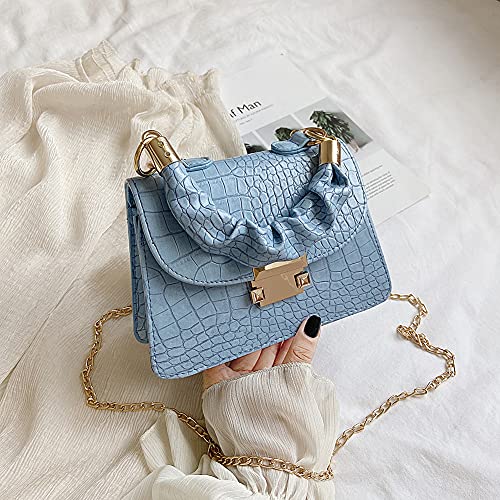 Liuduo Borse a tracolla con manico superiore, modello coccodrillo PU borsa a tracolla, borse ascellari, donne a pieghe totes retrò catena Messenger borsa, Blu,