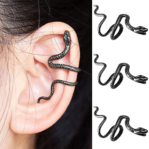LIUJZZJ Orecchini Punk Snake Cuff Orecchini Snake Ear Climber Orecchini Cartilagine Ear Crawler Gothic Serpent Clip on Wrap per Fonne Nero