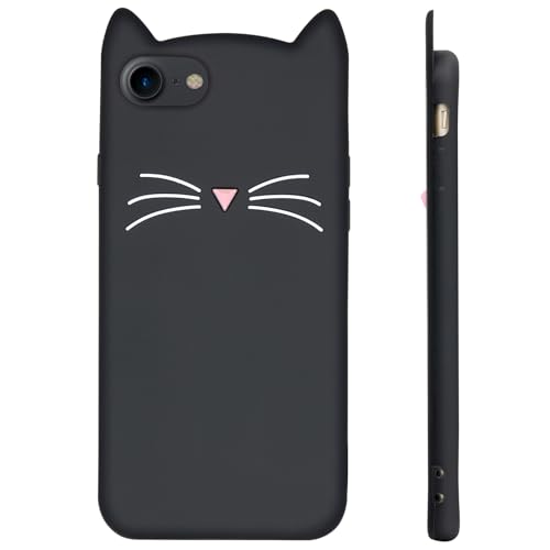 LIUKE Custodia per iPhone SE 2020 carina, custodia per iPhone 6, custodia per iPhone 6s, custodia per iPhone 7, custodia per iPhone 8, copertura in silicone 3D divertente gatto baffo nero