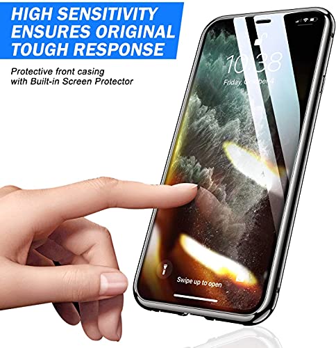 LIUKM Custodia per iPhone 11 Adsorbimento Magnetico Cover 360 Gradi Protezione Cornice Metallica Doppi Lati Trasparente Vetro Temperato Custodia - Blu