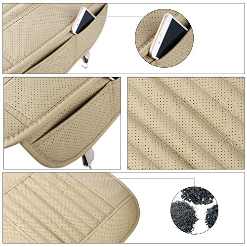 LIUNIAN 2 Pezzi Traspirante Cuscino del seggiolino Auto in Pelle Copertura di sede dell'automobile con Carbone di Legna di bambù Attivo Universale Tappetino per Auto Anteriore Coppia, Beige