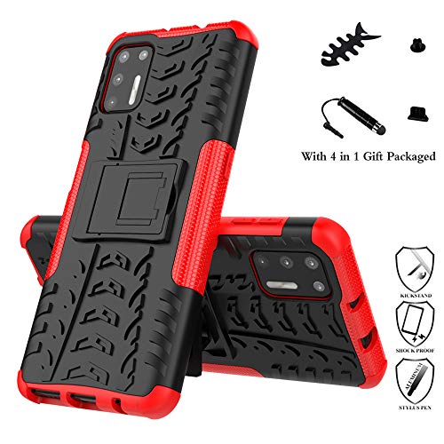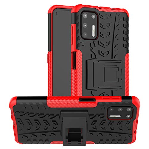 LiuShan Compatibile con Moto G9 Plus Custodia,Protettiva Shockproof Rigida Dual Layer Resistente agli Urti con cavalletto Caso per Motorola Moto G9 Plus Smartphone(Non per Moto G9 Play),Rosso