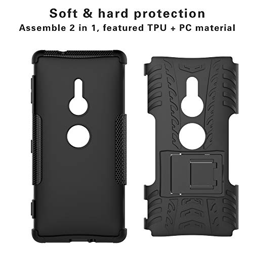 LiuShan Sony XZ2 Custodia, Protettiva Shockproof Rigida Dual Layer Resistente agli Urti con cavalletto Caso per Sony Xperia XZ2 Smartphone (con 4in1 Regalo impacchettato),Nero