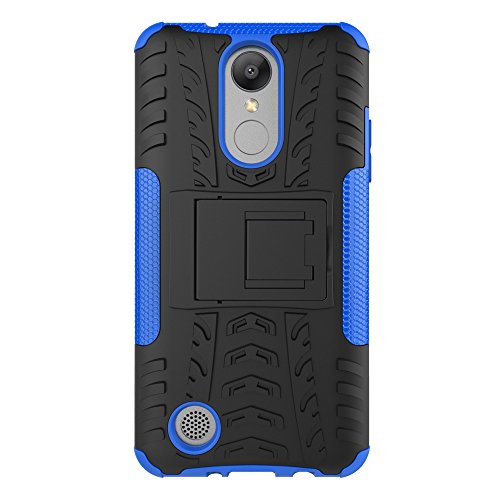 LiuShan LG K8 2017 Custodia, Protettiva Shockproof Rigida Dual Layer Resistente agli Urti con cavalletto Caso per LG Aristo / LV3 / MS210 / K8 2017 Smartphone(con 4in1 Regalo impacchettato),Blu