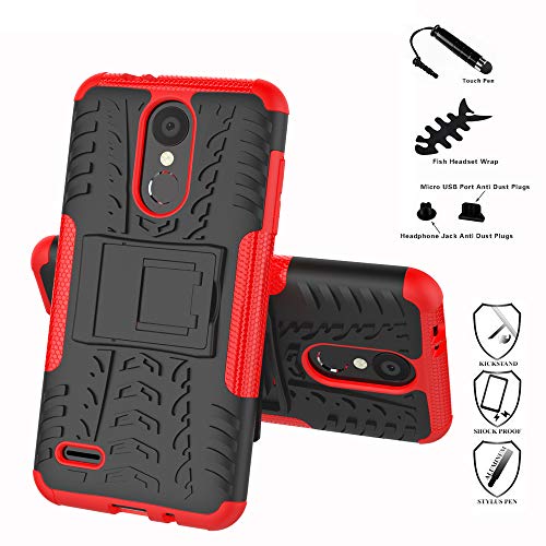 LiuShan LG K8 / K9 2018 Custodia, Protettiva Shockproof Rigida Dual Layer Resistente agli Urti con cavalletto Caso per LG K8 / LG K9 2018 Smartphone (con 4in1 Regalo impacchettato),Rosso