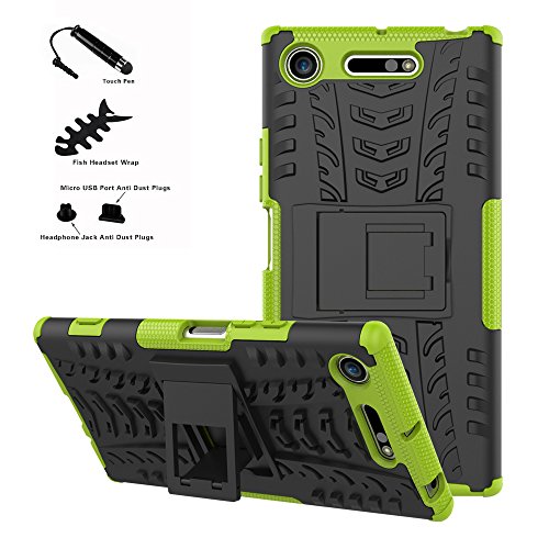 LiuShan Sony XZ1 Custodia, Protettiva Shockproof Rigida Dual Layer Resistente agli Urti con cavalletto Caso per Sony Xperia XZ1 Smartphone(con 4in1 Regalo impacchettato),Verde