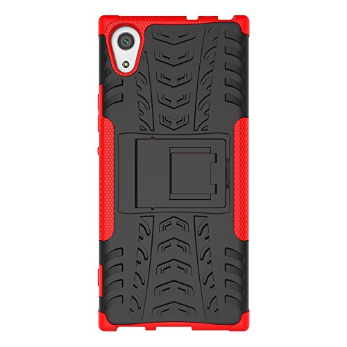 LiuShan Sony XA1 Custodia, Protettiva Shockproof Rigida Dual Layer Resistente agli Urti con cavalletto Caso per Sony Xperia XA1 Smartphone(con 4in1 Regalo impacchettato),Rosso