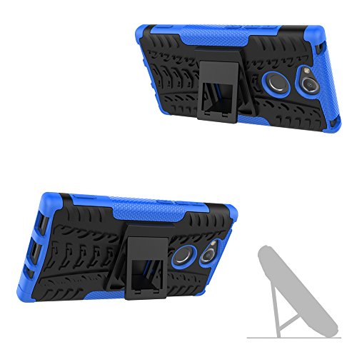 LiuShan Sony XA2 Custodia, Protettiva Shockproof Rigida Dual Layer Resistente agli Urti con cavalletto Caso per Sony Xperia XA2 Smartphone(con 4in1 Regalo impacchettato),Blu