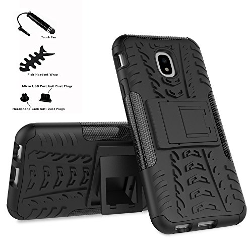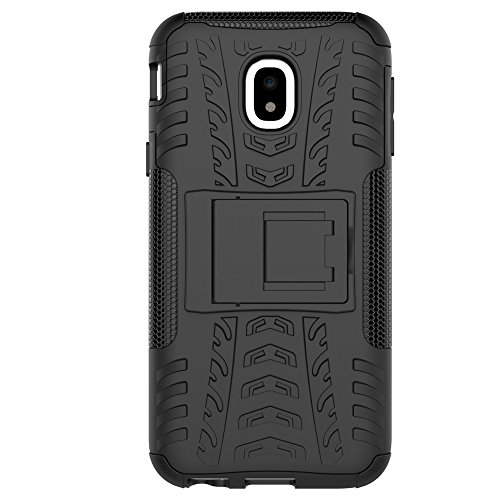 LiuShan Galaxy J3 2017 Custodia, Protettiva Shockproof Rigida Dual Layer Resistente agli Urti con cavalletto Caso per Samsung Galaxy J3 2017 / J330 Smartphone(con 4in1 Regalo impacchettato),Nero