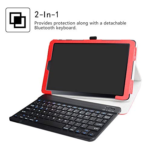 LiuShan Galaxy Tab a 10.5 Custodia, Staccabile Tastiera QWERTY (Layout Inglese) Custodia per 10.5" Samsung Galaxy Tab a 10.5 T590 T595 Android Tablet,Rosso