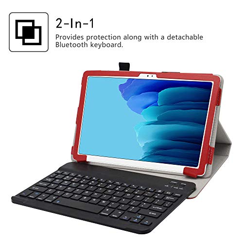 LiuShan Galaxy Tab A7 Custodia, Staccabile Tastiera QWERTY (Layout Inglese) Custodia per 10.4" Samsung Galaxy Tab A7 10.4 (2020) T500 T505,Rosso