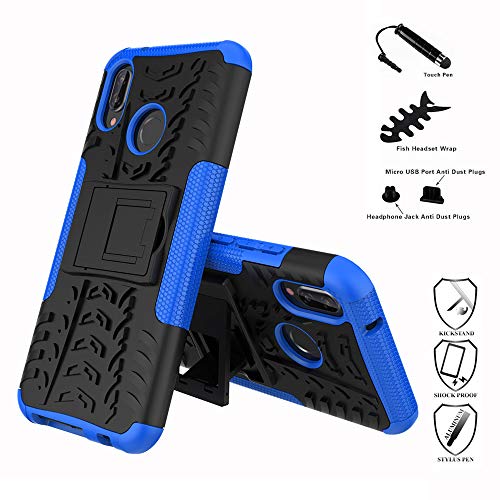 LiuShan Huawei P20 Lite Custodia, Protettiva Shockproof Rigida Dual Layer Resistente agli Urti con cavalletto Caso per Huawei P20 Lite Smartphone (con 4in1 Regalo impacchettato),Blu