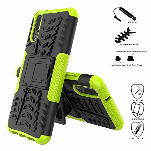 LiuShan Huawei P20 Custodia, Protettiva Shockproof Rigida Dual Layer Resistente agli Urti con cavalletto Caso per Huawei P20 Smartphone (con 4in1 Regalo impacchettato),Verde